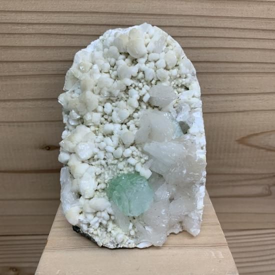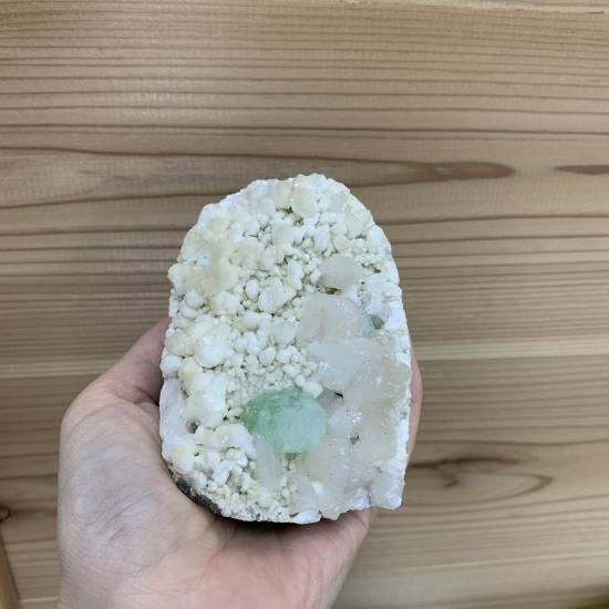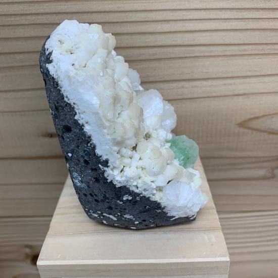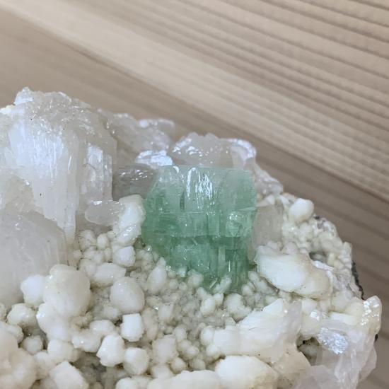 白いあられのような沸石に咲くアポフィライトの四角い花