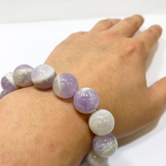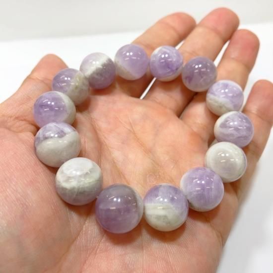 ホワイトクリスタルに内包しているアメジストの優しい紫色が特徴的で、癒されます。