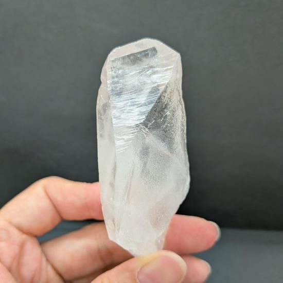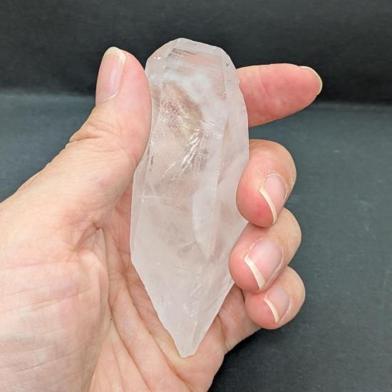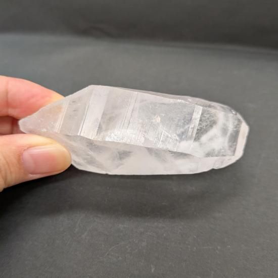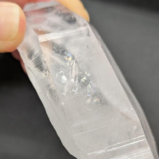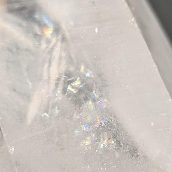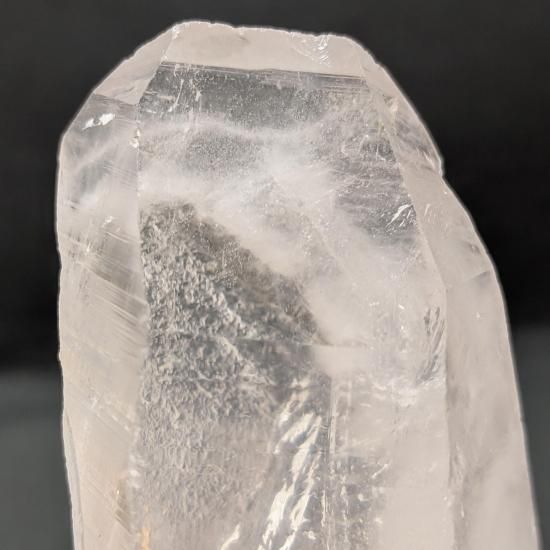 平たいタビー状の先端、ぷっくりとした柱の内側に雲がかかったようなファントムが見えます。背面は剥離しており、剥離した後、融解したであろう痕がわかります。